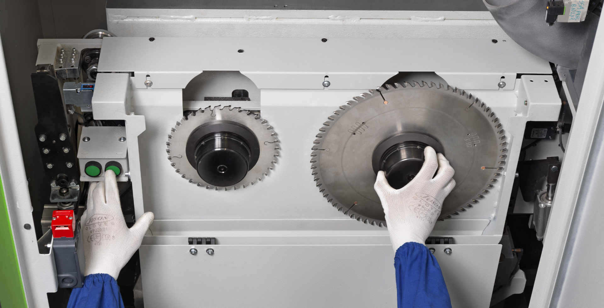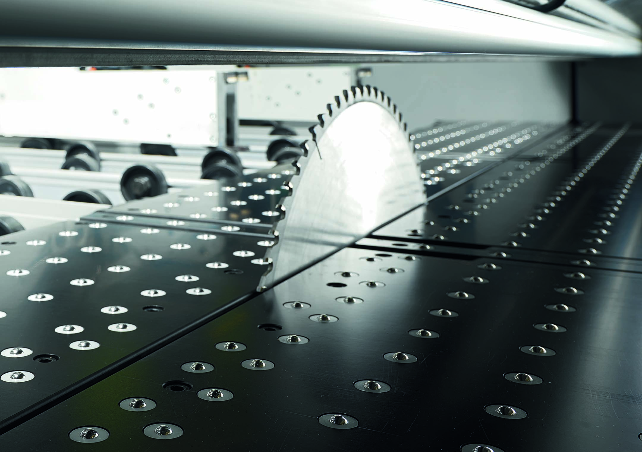 Beam saw blades need to be changed regularly to maintain cutting performance. The intervals between changes will vary depending on usage - on a high output line operating an eight-hour shift pattern, the blade might need to be replaced twice a day, whereas a small furniture manufacturer running bespoke jobs might only need to replace the main blade once a week.