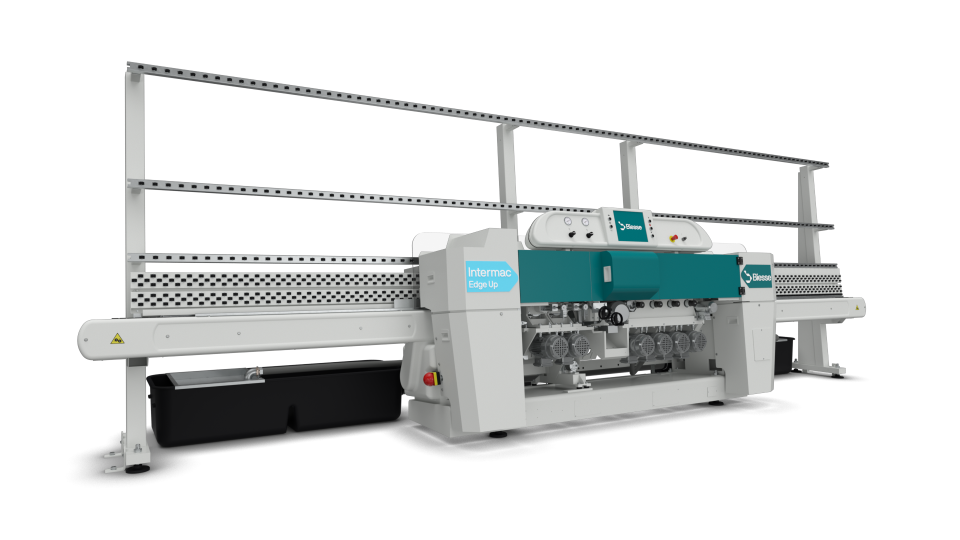 The glass transportation on inlet and outlet arms is by means of Delrin made chains combined with rubber anti-friction pads.