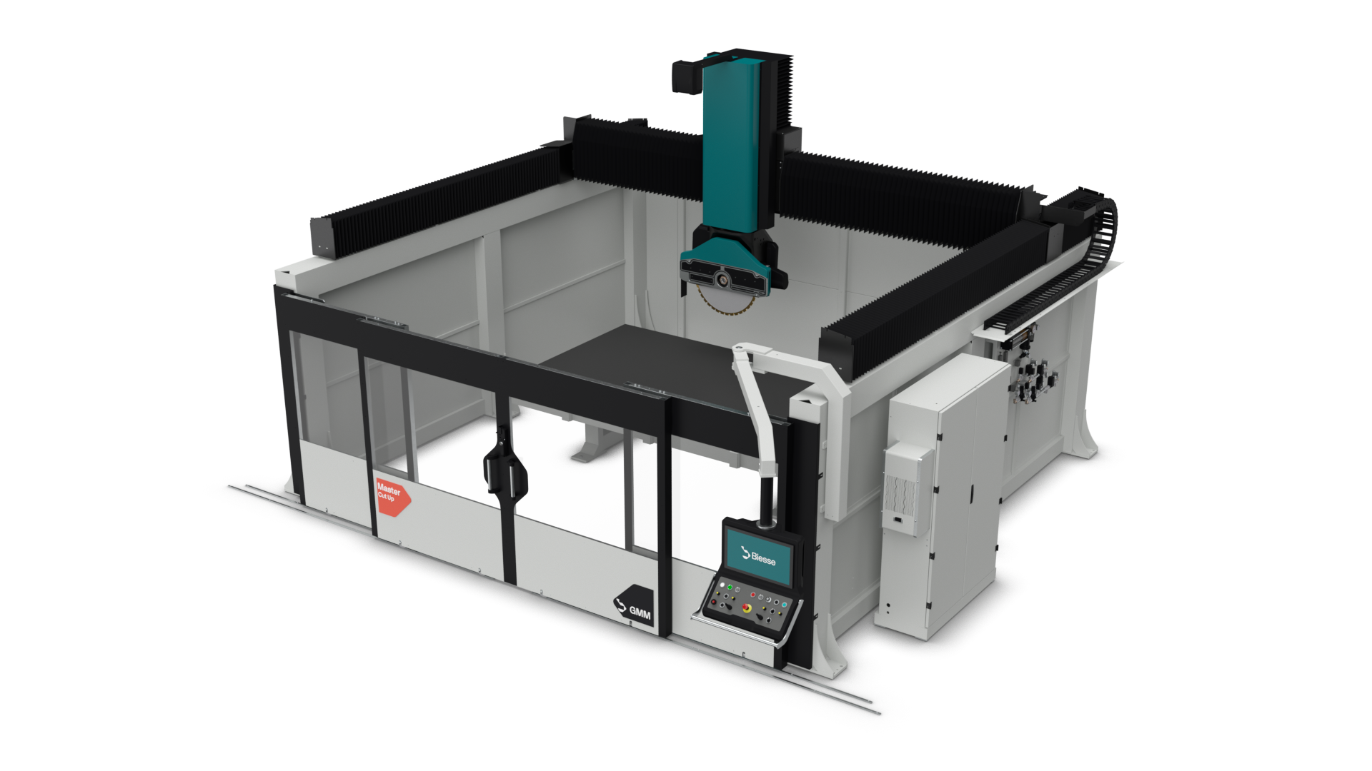Master Cut UP C W is a mid-size 5-axis CNC sawing machine that combines precision, power and ease of use in a compact footprint. With a 600 mm Z-axis stroke and a Ø 725 mm blade, it processes slabs and medium-thickness stone elements with efficiency and accuracy. Intuitive and reliable, it is ideal for homeware decoration, small architectural projects and funerary applications, supporting both repetitive and custom production.