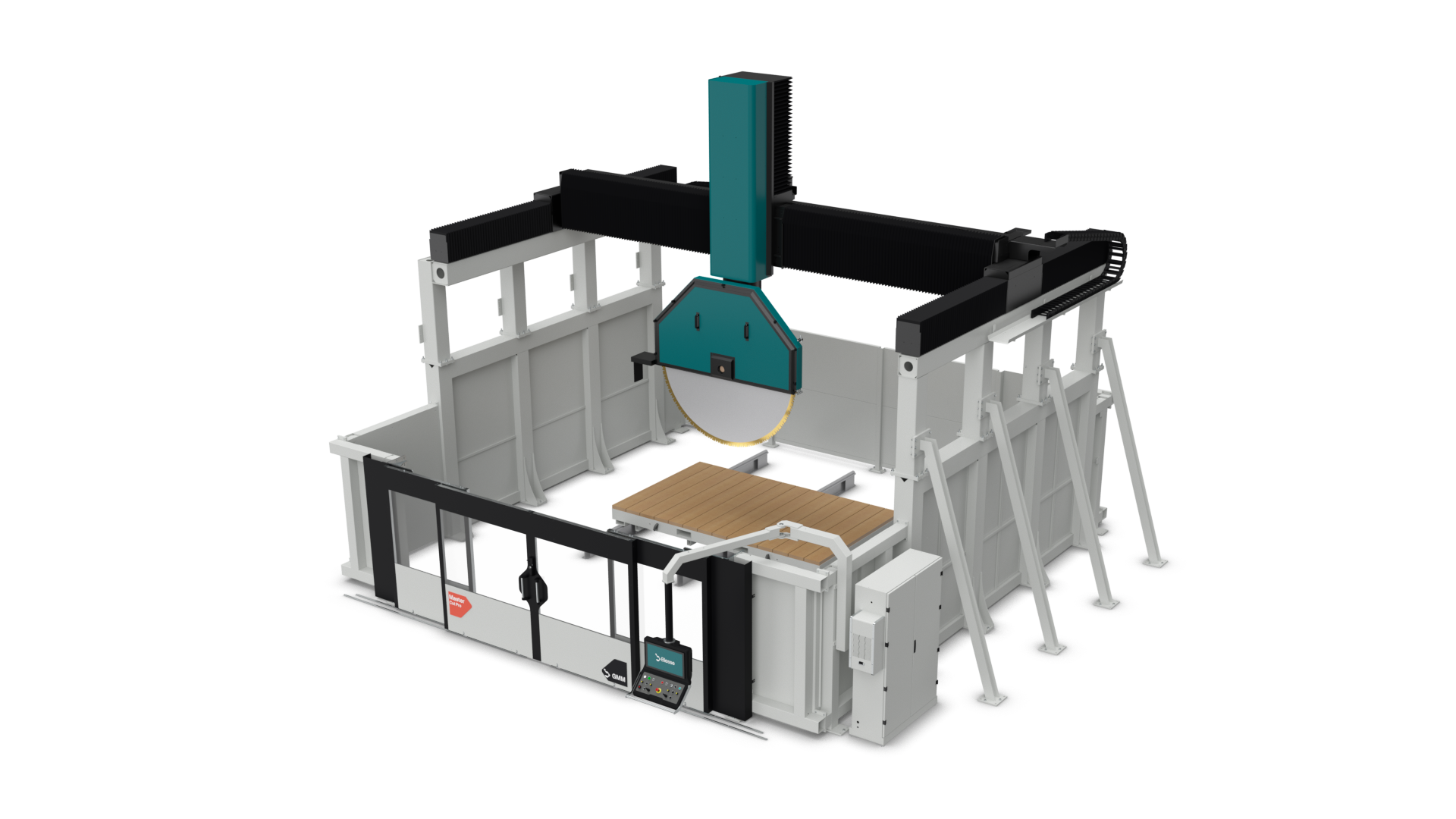 Master Cut Pro B W: a one-of-a-kind machine concept, delivers the power of a large block-cutting machine with the agility and versatility of a 5-axis bridge saw. Its robust structure, advanced motion technology and precise control system enable complex cuts, high productivity and exceptional accuracy. Master Cut Pro B W is engineered to handle demanding workloads while providing the flexibility required for modern stone processing.