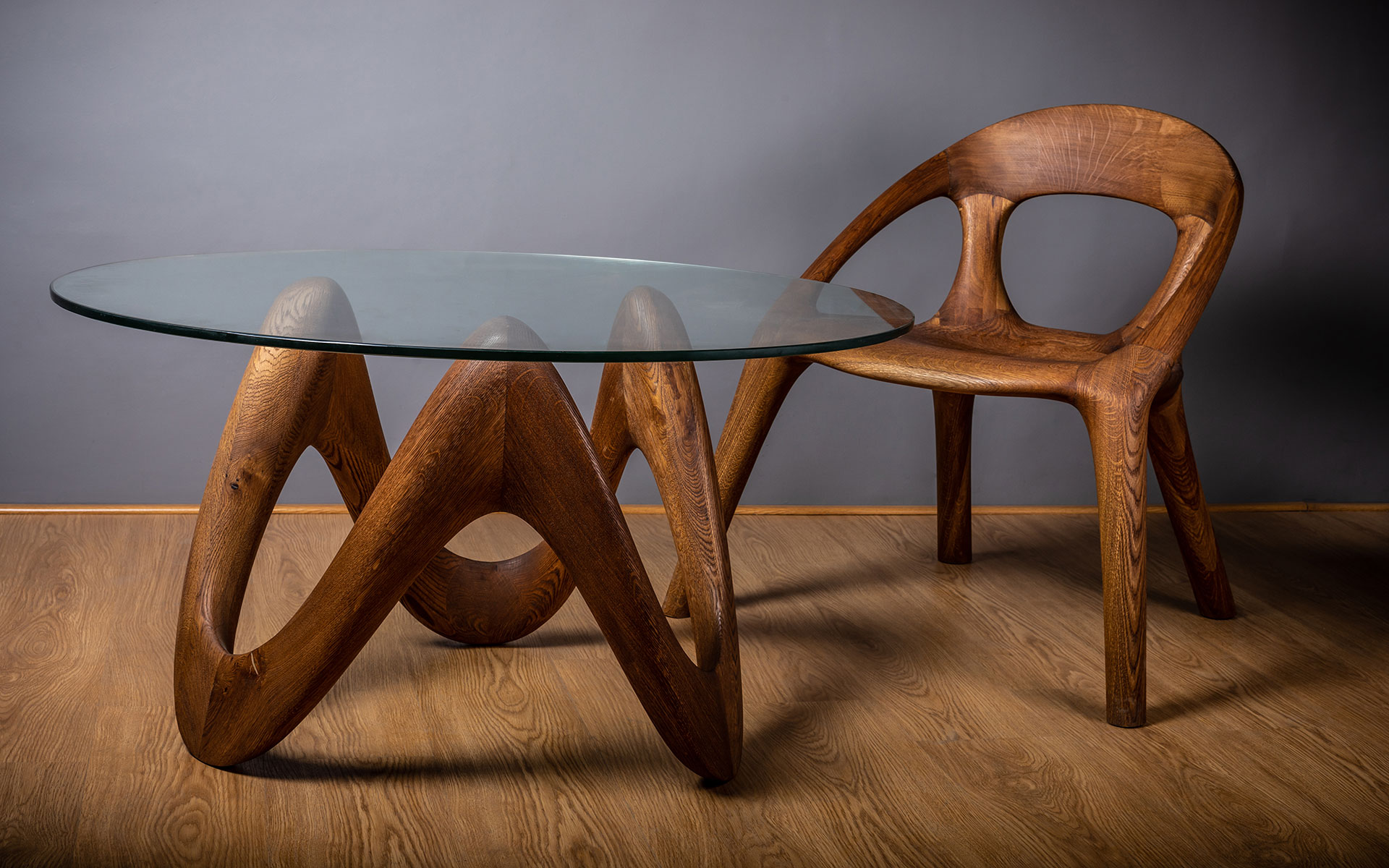 Ellipse and Leon, the two objects exhibited as part of the day of Italian design in Mumbai this past March, were designed by the Bram Woodcrafting Studio, whose headquarters are in Mysore, India. Magic comes to life in the East: Biesse was searching for companies capable of testing its CNC technology on the field, and the BWM studio had the right designs - the kind that seem daunting but actually turn out to be perfect - and was backed by the creativity and courage of a master artisan like Bram. The machining centre and the bSolid software worked in tandem to convert the idea into a masterpiece. The result is admirable. The wood willingly lends itself to transformation into a sinuous table and chair with flawless and infinite contours, a work that flows uninterrupted, just like the waves that inspired it.
