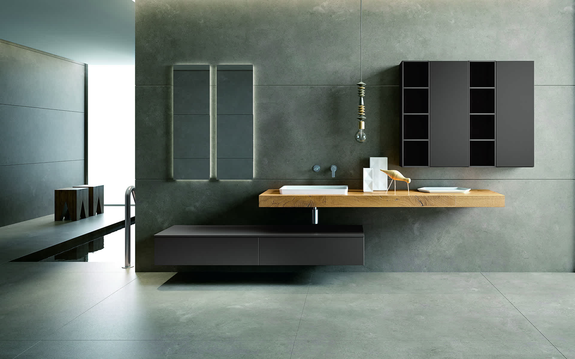 Combining form and function. From the modern to the classic, every style stands out thanks to skilled artisanship perfected over the years: BMT collections are the perfect example of elegant and cutting-edge designs responding to functional needs. They are the perfect answer to the changing demands of everyday life, and a source of new connections that engage the senses. "We believe," Marco explains, "that bathroom furniture is now an integral part of an environment that has become the temple of physical well-being, a place where elegant lines, lighting and sensations all come together". Modularity and personalisation are the unique strengths of BMT, along with a wide range of finishes, materials and colours used to customise the bathroom for each customer. They are the essence of Marco refers to as the tailor-made strategy: "This is how we design and craft the product to fit the customer's needs while striving for perfection".