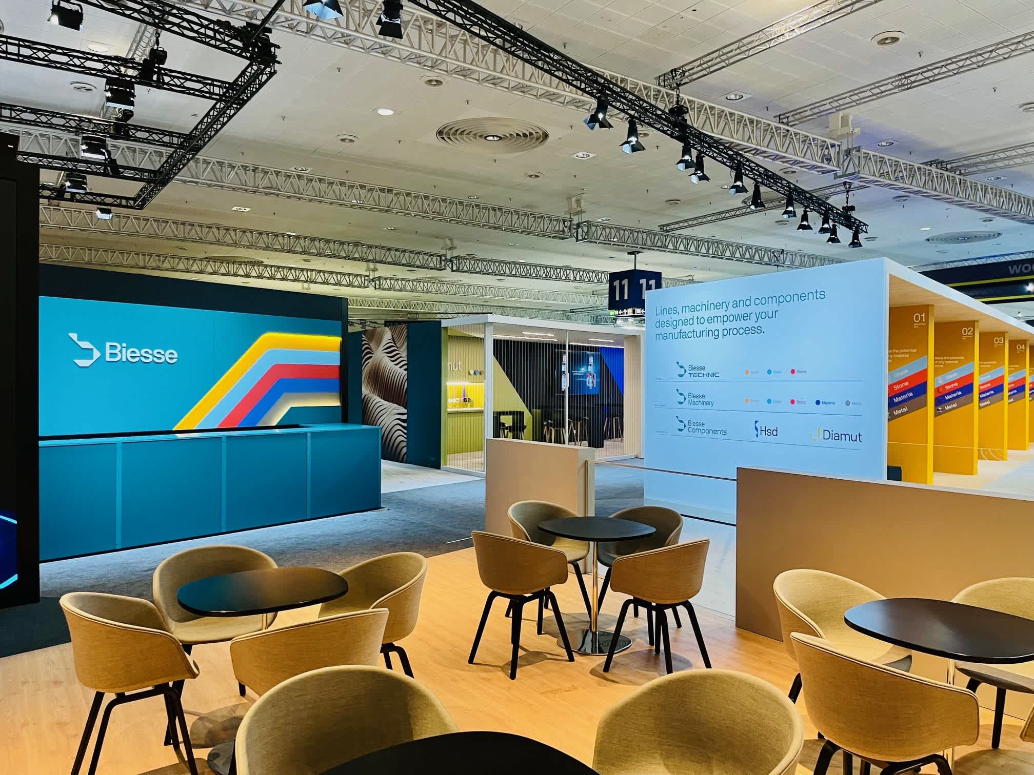 The stand also features the components segment, with Hsd and Diamut presenting a dedicated area previewing new visuals and logos, along with key product innovations for different materials.