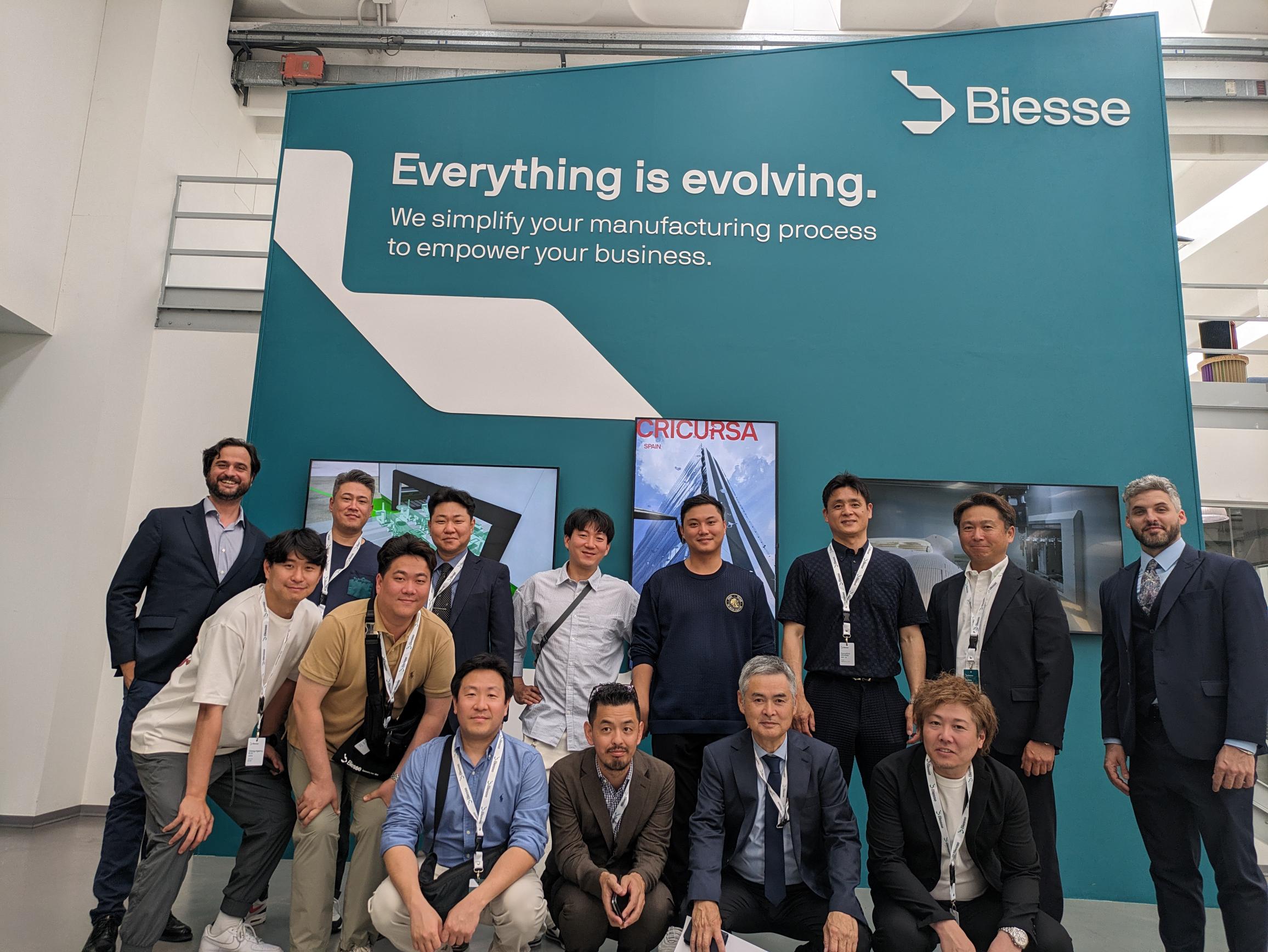 Inspired by cutting-edge woodworking techniques, we conducted the Discovery Tour 2024 in May, a tour program that introduces customers to and explores ways to unlock the potential of all materials. As examples of Biesse applications, the tour visited Falegnameria Biffi, a medium-sized furniture company located in northern Italy, and LAGO arredamenti, a furniture company that is making great strides with its sophisticated design. At Biesse's headquarters in Pesaro, we visited the showroom to see demonstrations of 5-axis CNC and panel saw machines and visited the production plant where the Biesse machines are manufactured. The tour also included the visitors to Biesse's multi-materials experience, which includes stone and glass machines.